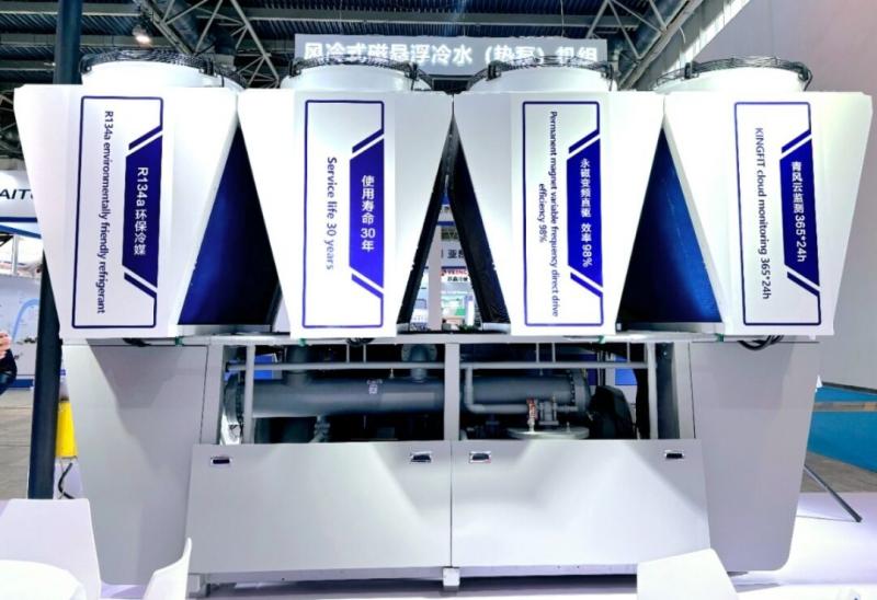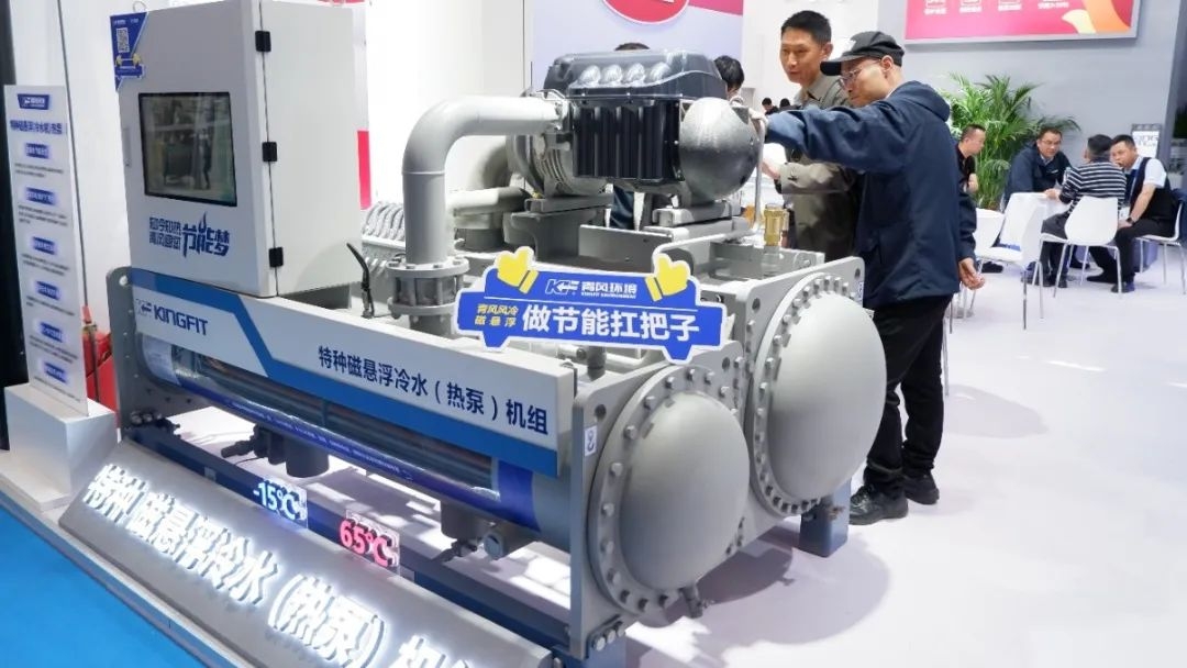 除了新品官宣之外,青風其他明星產品高溫水源熱泵和變頻離心磁懸浮水冷式冷水機組也在展會上一同展出,引發行業客戶的熱烈關注。