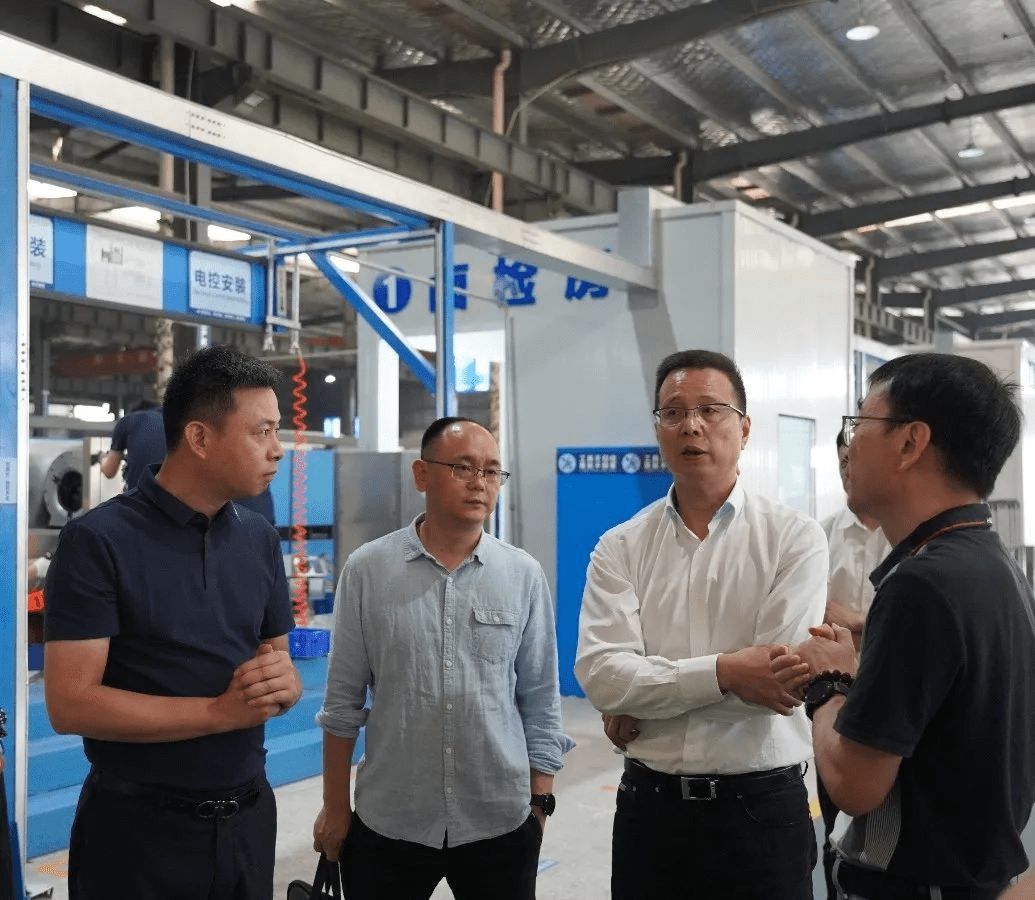 在浙江青風環境股份有限公司,潘建漳局長一行參觀了生產車間,詳細了解公司生產經營、技術攻關及低溫儲糧專用設備研發投入等情況。